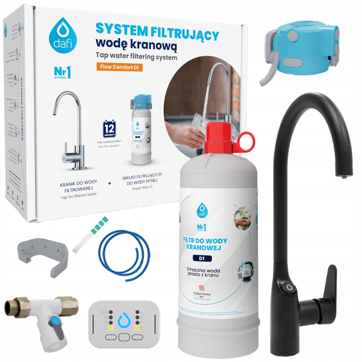 Система фільтрації води під раковину Dafi FLOW COMFORT D1 + кран COMO чорний