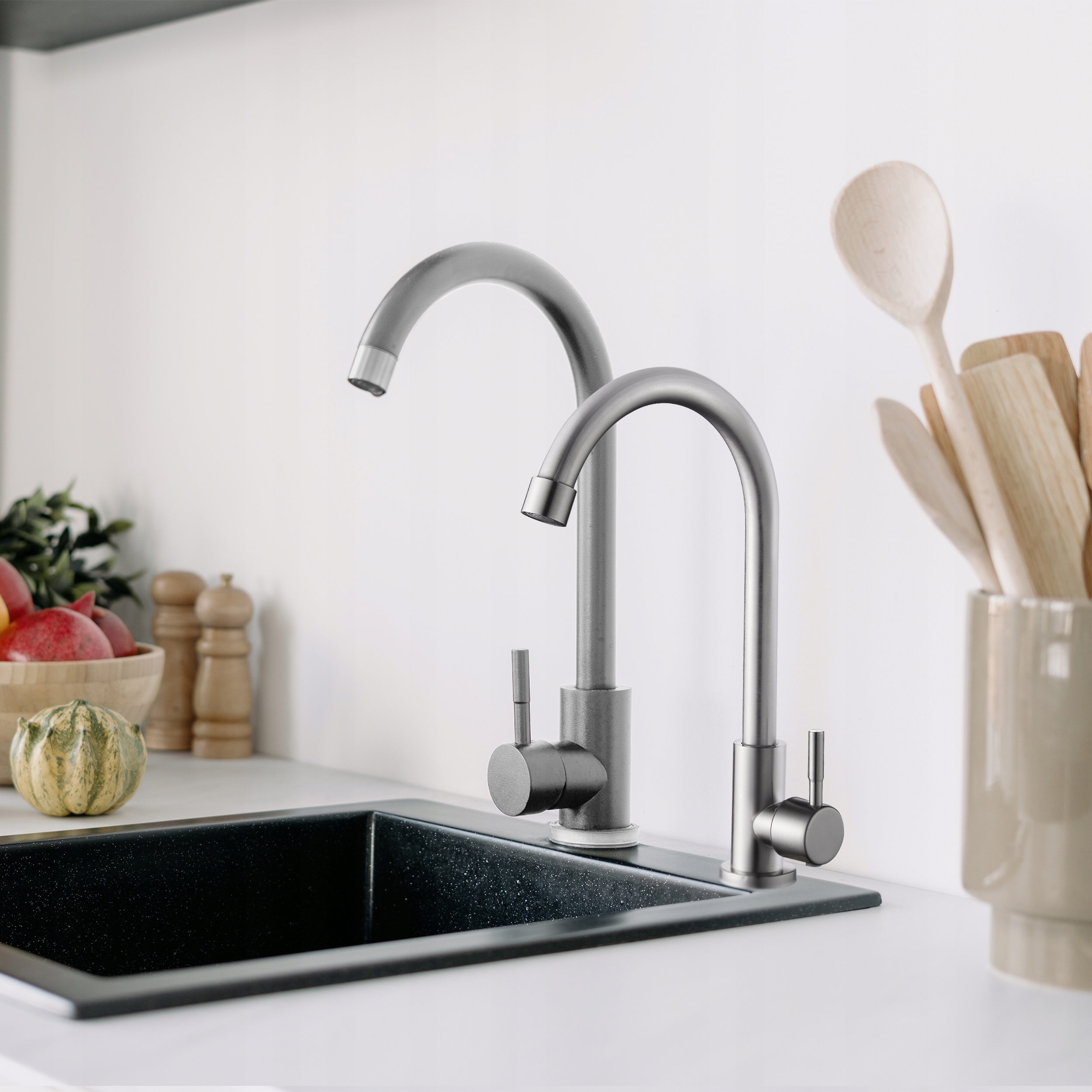 Кухонная батарея с вращением на 360 ° обеспечит максимальную эластичность при промывании блюд и приготовлении блюд. Благодаря полному обороту использование батарей становится более удобным и более эффективным. Значительные облегчая ежедневные обязанности на кухне.