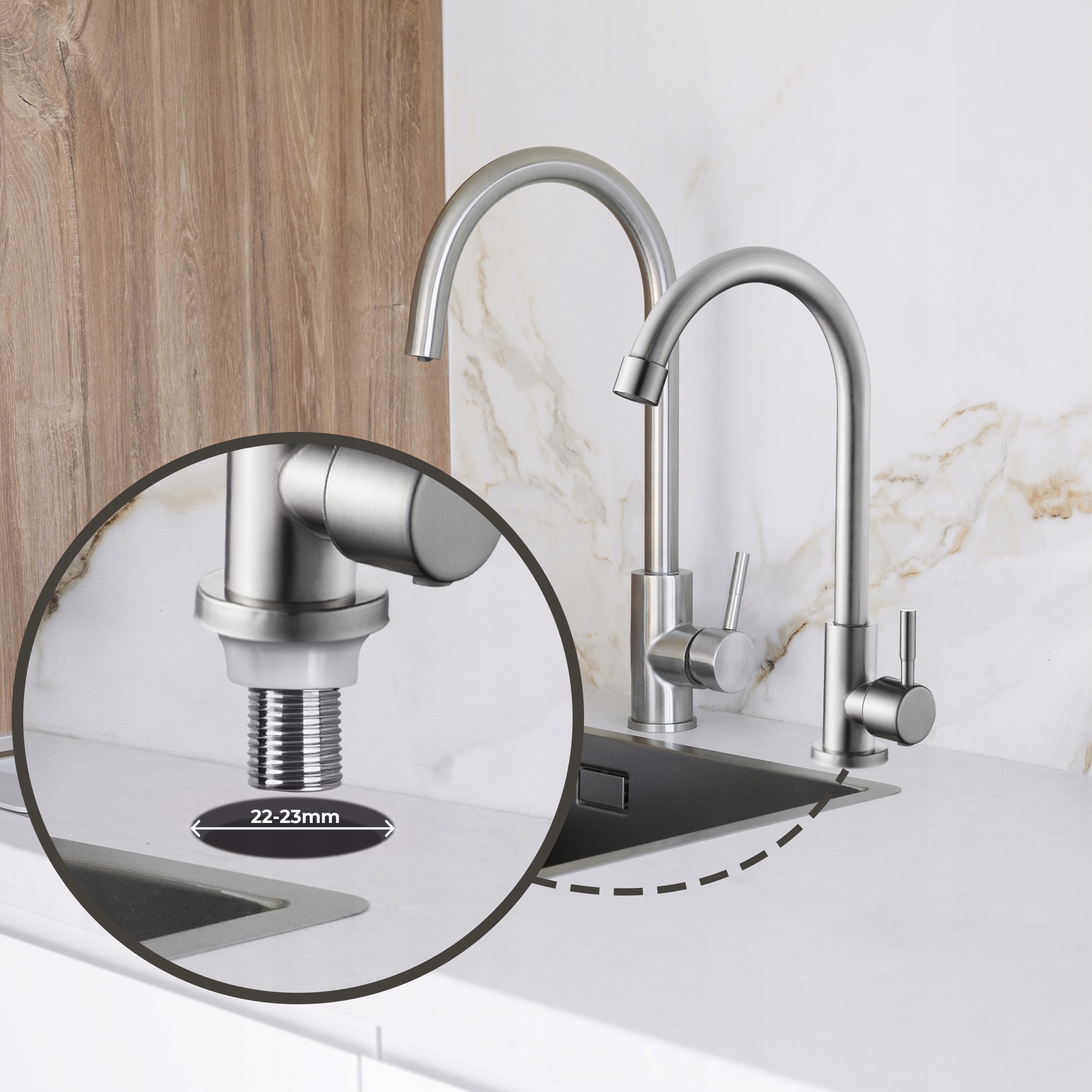 ⭐ Кухонная батарея из высококачественной матовой нержавеющей стали. Подходит для раковины с монтажным отверстием 22-23 мм. Это было долговечно и легко чистить. посвящен установке с системой фильтров Aquafloow
