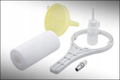 optiflush 2000 2 Устройство подключающих кабелей с системой резьбы 1/4, запасным фильтром, ключом к замене фильтра, воронки.