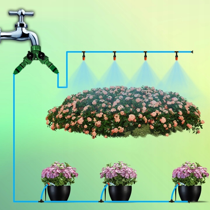 Оросительная система с трубой длиной 25 м может поливать все ваши растения одновременно. Каждую насадку можно регулировать индивидуально, что позволяет одновременно удовлетворить потребности в воде разных растений. Вы можете прекратить/продолжить полив растений, повернув кнопки на двухстороннем разъеме или переключив капельницу и переключатели форсунок.