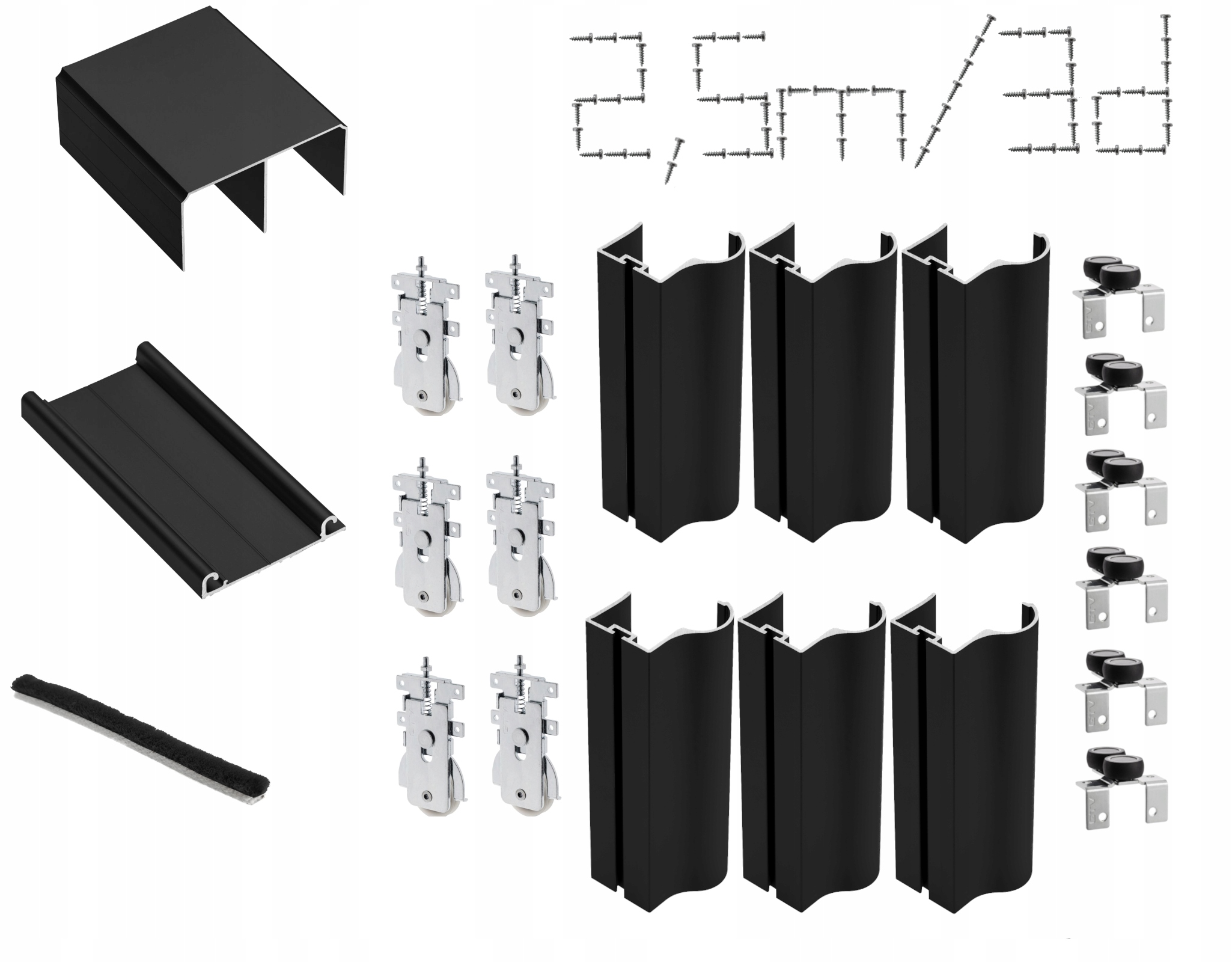 Комплект фурнитуры LOFT для раздвижных дверей GTV Ergo для конструкции из 3 створок, для ниши шириной до 2,5 м и высотой 2,70 м, цвет черный матовый