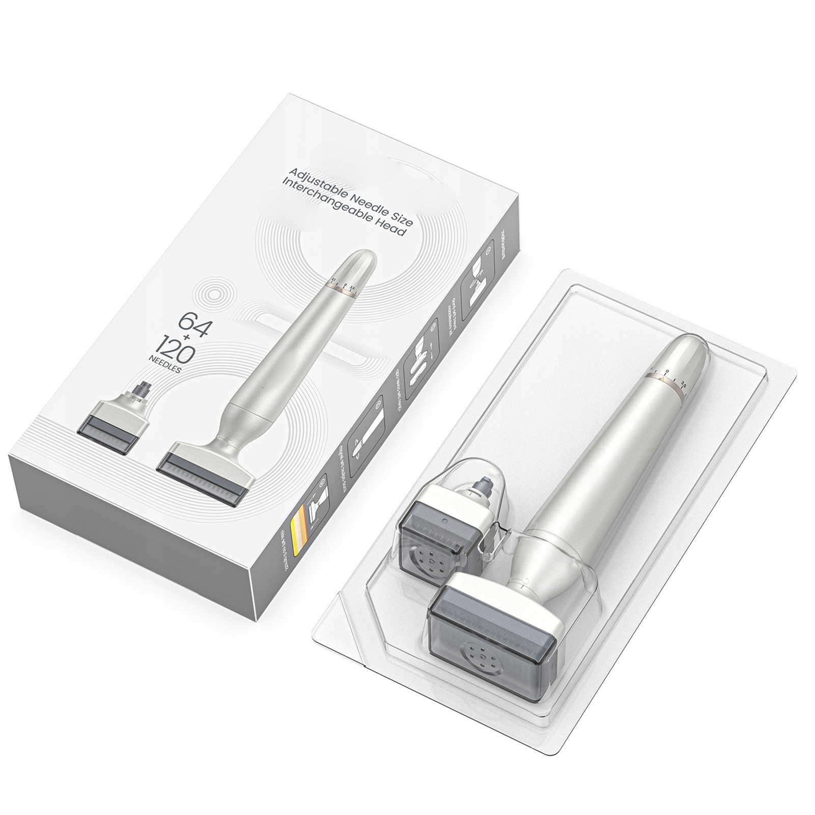 1. Сменные насадки: насадка с 64 иглами предназначена для целевых целей, таких как удаление залысин, расширение линий разрыва и локализованное истончение волос, а головка со 120 иглами оптимизирована для комплексного лечения кожи головы с максимальной эффективностью покрытия и идеально подходит для общего улучшения густоты волос и комплексного поддержания здоровья кожи головы.