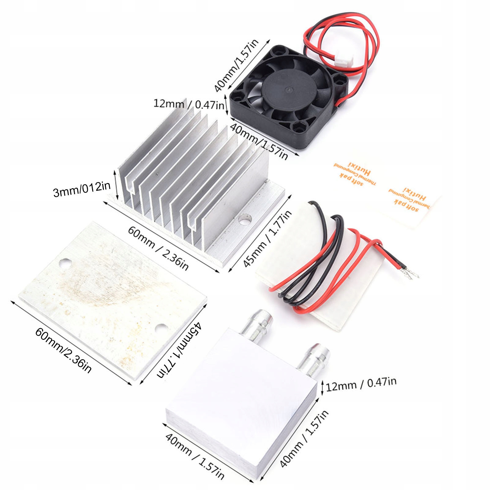 Размер проводящего модуля: 60 x 45 x 30 мм. x 40 x 12 мм/1,57 x 1,57 x 0,47 дюймаРазмер вентилятора: 40 x 40 x 10 мм/1,57 x 1,57 x 0,39 дюйма