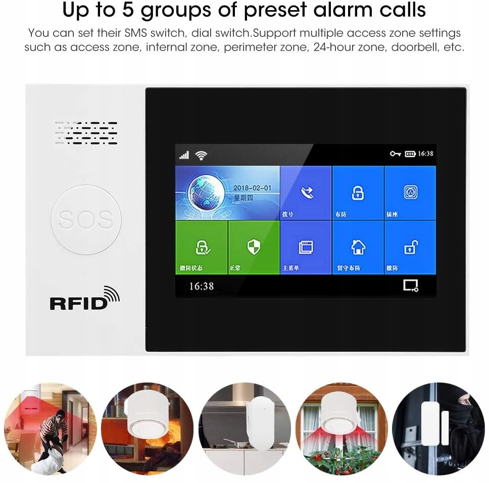 - ◆ 4,3-дюймовый цветной IPS-дисплей, полностью емкостный сенсорный экран, простой механический интерфейс, система оповещения GSM — надежный помощник в безопасности и сопровождает вас в обеспечении безопасности дома.