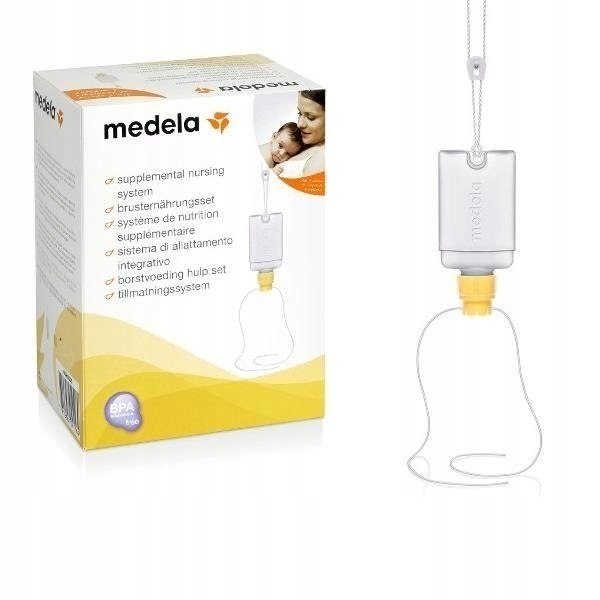 Medela SNS Set Система поддержки кормления Набор SNS используется в качестве дополнения к кормлению младенцев во время грудного вскармливания. Это позволяет женщинам кормить грудью, даже если у них недостаточно молока. Система СНС также используется для восстановления сосательной функции и одновременно для стимуляции лактации. Система поддержки кормления представляет собой резервуар, предназначенный для наполнения дополнительными питательными веществами, которые ребенок получает во время грудного вскармливания.