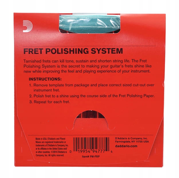 Система полировки ладов Planet Waves – это секрет, благодаря которому лады вашей гитары всегда будут сиять как новые. Поместите один из входящих в комплект шаблонов в прорезь, соответствующую размеру ладов вашей гитары, возьмите бумагу и отполируйте. Через несколько минут лады засияют. Гитары звучат лучше всего, когда их лады чистые и отполированные.