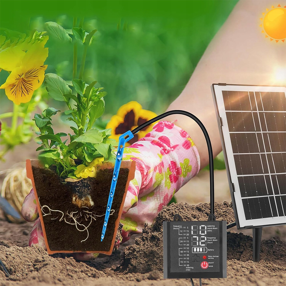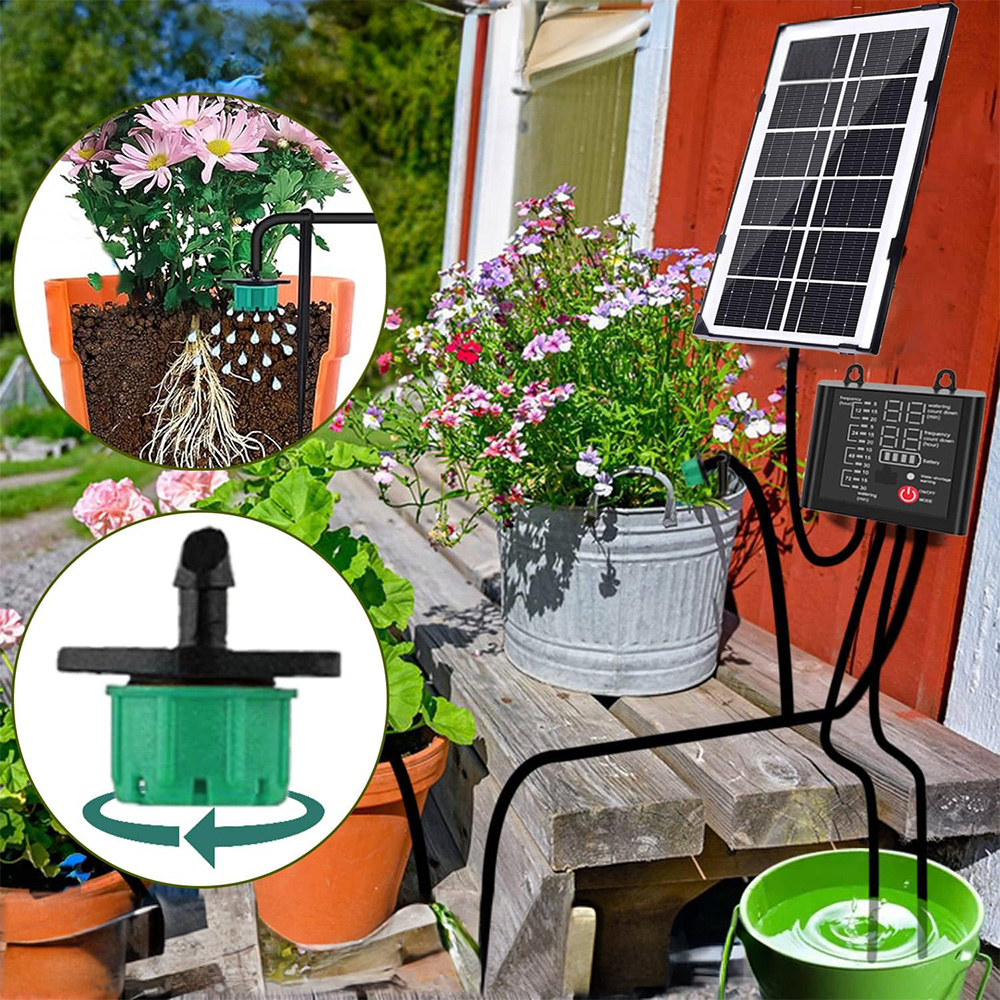 Наш комплект для капельного орошения на солнечной энергии забирает воду непосредственно из контейнеров, кран не требуется. Поливает растения через заданные промежутки времени и в определенных количествах. Идеальный продукт для балконов, террас, небольших садов, подвесных корзин, горшечных растений, клумб и теплиц.