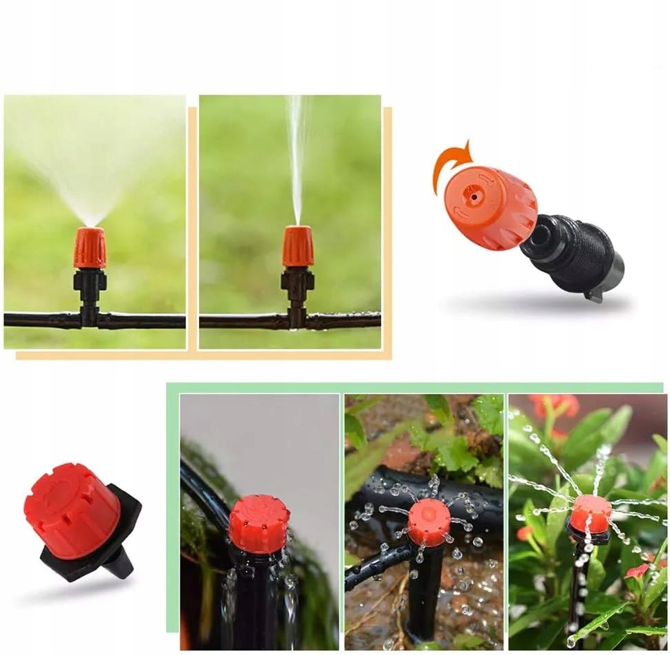 Наша система имеет возможность регулировки расхода воды в каждой насадке, что позволяет настроить полив под индивидуальные потребности различных растений. Вы можете прекратить/продолжить полив растений, повернув кнопки на двухстороннем разъеме или повернув переключатели капельницы и форсунки. Это дает вам полный контроль над процессом полива.