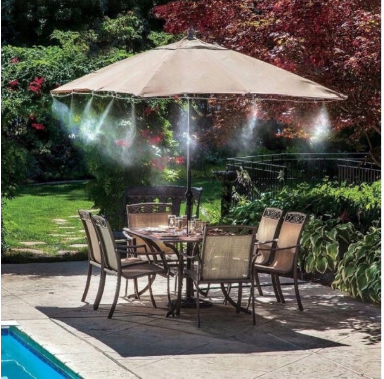 Водяной туман — идеальный способ охладиться летом. Форсунки с мелкой сеткой создают тонкий туман, который защитит вас от жары. Водяную завесу можно установить на садовую мебель, балкон, садовый зонтик, террасу, садовая беседка также станет прекрасным местом. Успешная вечеринка в саду не обходится без оригинального декора: туман заменит все садовые украшения, разбрызгиватель снижает температуру воздуха, помогает пережить жару и гарантирует полный релакс и освежение на протяжении всего праздника.