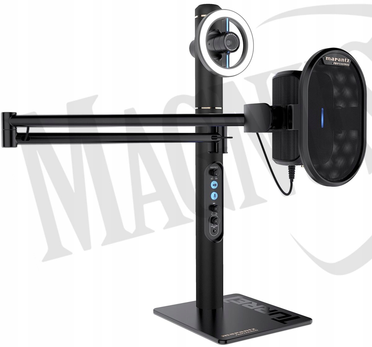 Входящий в комплект микрофон представляет собой исключительно эффективное устройство с электретной диафрагмой диаметром 14 мм, чувствительностью -34 дБ ± 2 дБ (0 дБ = 1 В/Па при 1 кГц), максимальным уровнем звукового давления 132 дБ (THD: 0,5% 1 кГц) и широким диапазоном частот. отклик со значением 150 – 15 кГц. Для удобства пользователя предусилитель интегрирован с регулятором усиления микрофона устройства, поэтому пользователи могут напрямую контролировать сигнал микрофона во время записи или трансляции без задержки мониторинга через выход для наушников компьютера, поэтому имеется также встроенный автономный выход для наушников. с регулятором громкости.