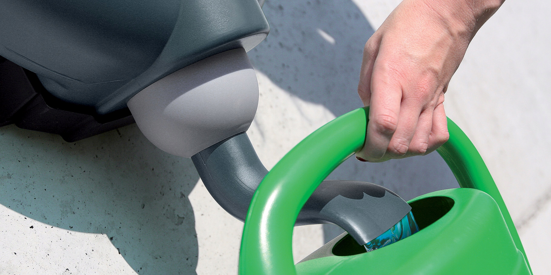 Просто нажмите кнопку на резервуаре, и лейка или ведро мгновенно наполнятся водой.