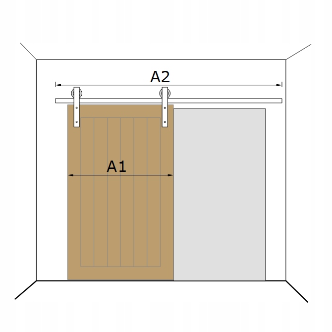 - Длина направляющего должна быть вдвое больше, чем дверь. Например: если дверь составляет 90 см, рельс должен быть 180 см.