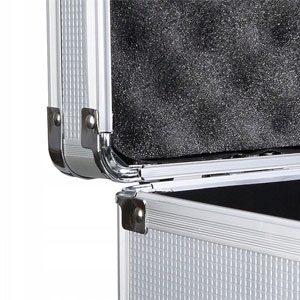 Изготовлен из алюминиевого сплава; вокруг него усилен металл; устойчив к падению и огнестойкости.
