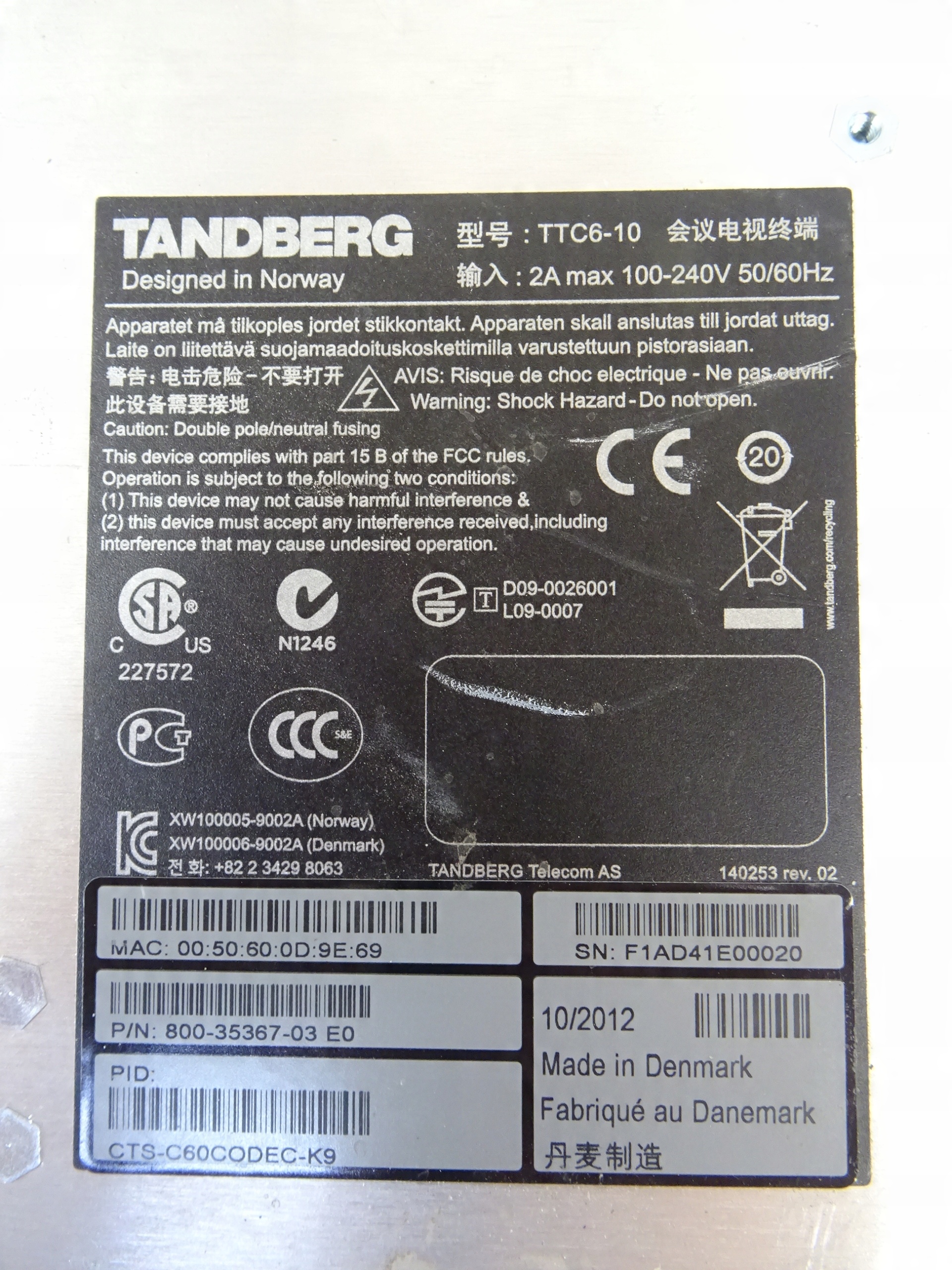 Просматривая «Система відеоконференцзв'язку Tandberg TTC6-10 Cisco», вы можете быть уверены, что данный товар из каталога «USB и VoIP телефоны» будет доставлен из Польши и проверен на целостность. В цене товара, указанной на сайте, учтена доставка из Польши. Внимание!!! Товары для Евросоюза, согласно законодательству стран Евросоюза, могут отличаться упаковкой или наполнением.