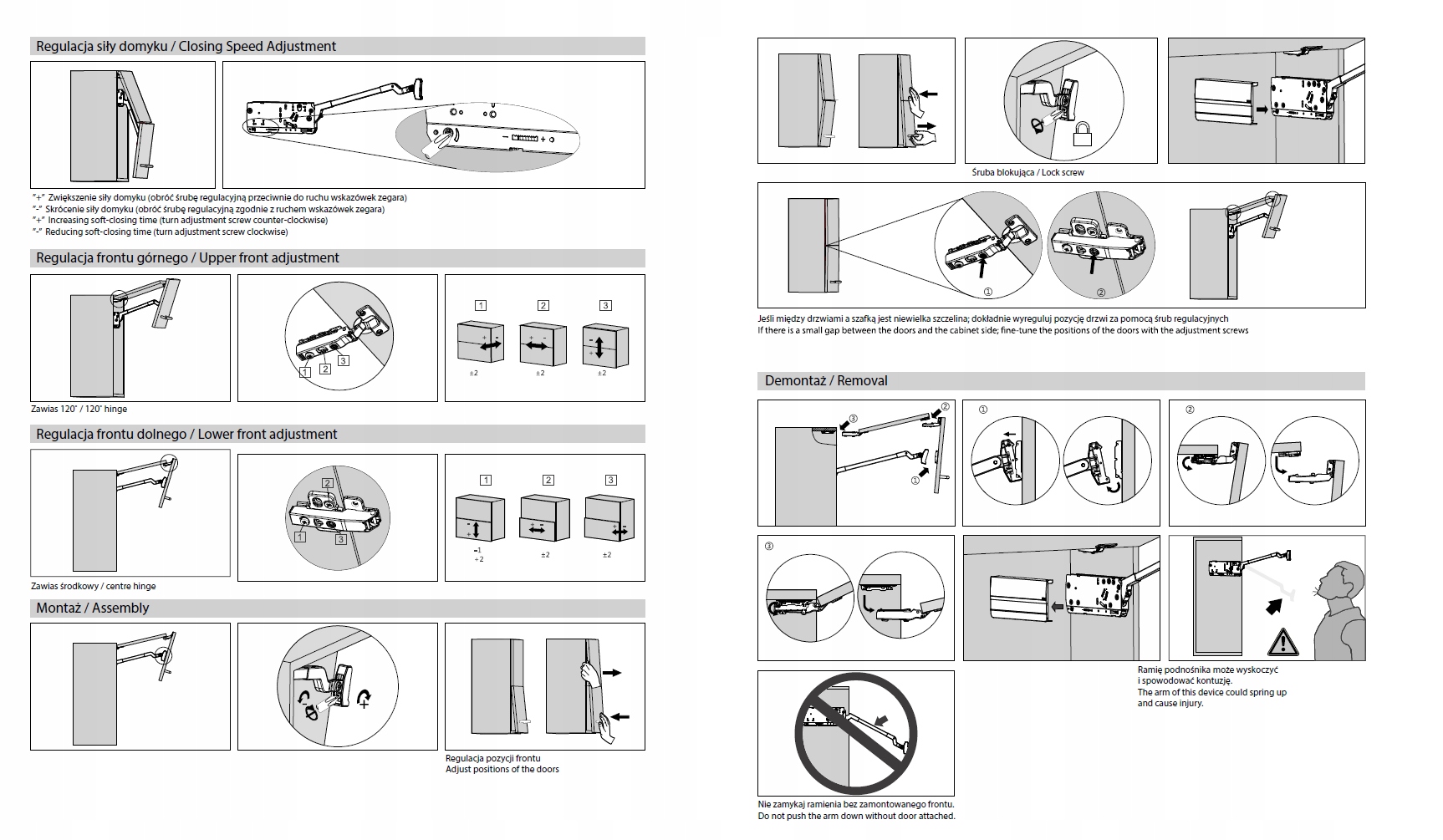 Предложение распространяется на комплектацию, включающую сборку 2-х симметричных фасадов. Подъемник в основном используется при изготовлении верхних шкафов с наклонными фасадами. Передняя часть, состоящая из двух частей, поднимается и складывается при открытии, обеспечивая легкий доступ к ручке в любое время. Благодаря многоуровневой регулировке вы можете настроить подъемник в соответствии со своими предпочтениями. Механизм имеет встроенный тормоз, благодаря которому шкаф можно закрыть, не боясь захлопнуться. Более того, вы можете остановить его в любой момент.