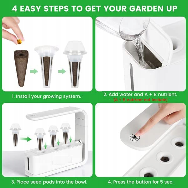 【Гидропонная система циркуляции】Комплект для проращивания сада в помещении оснащен системой циркуляции водяного насоса, растения растут быстрее, чем почва. У вас есть полный контроль над погодой круглый год, без беспорядка и ограничений. Внутри нет семян из-за ограничений на импорт.