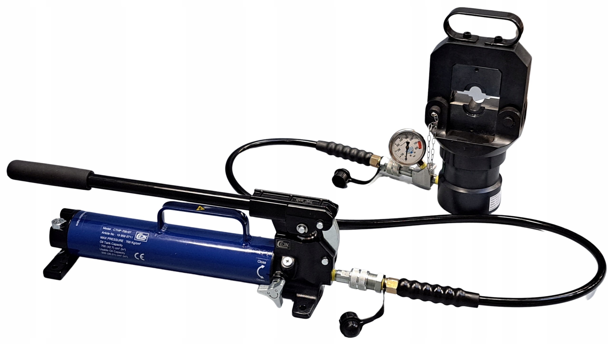 Система терминала Eder, питаемой ручным насосом. Он предназначен для кончиков зажима в соответствии со стандартами стальных канатов диаметром от 8 до 16 мм . Устройство используется в лесном хозяйстве, арбористике и промышленности.
