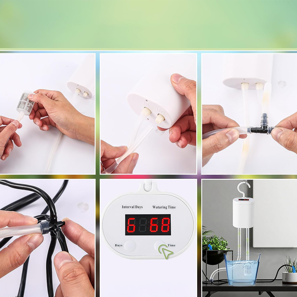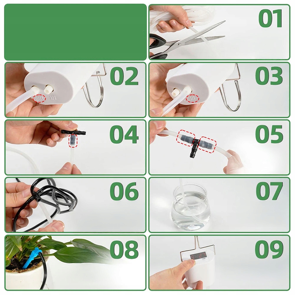 - - Не требуется кран и поддерживает защиту от дефицита воды. Он может автоматически поливать растения и перестать работать после того, как вода исчерпана, без повреждения насоса и без опасности.