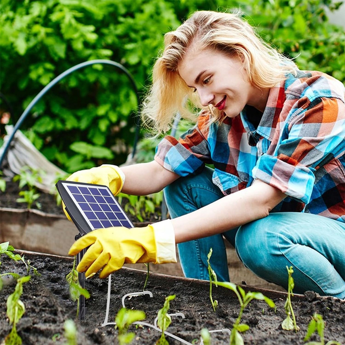✔automatic Solar Irrigation: благодаря технологии солнечной энергии солнечная панель может хранить электричество, вставить набор кабелей и водопроводных труб в подготовленное ведро, установить время полива и частоту полива, а система будет автоматически поливать растения. Он может быть размещен внутри или снаружи, и это очень полезно для деловых путешественников. Благодаря водонепроницаемости IP67, устройство может легко справиться в дождливые дни.