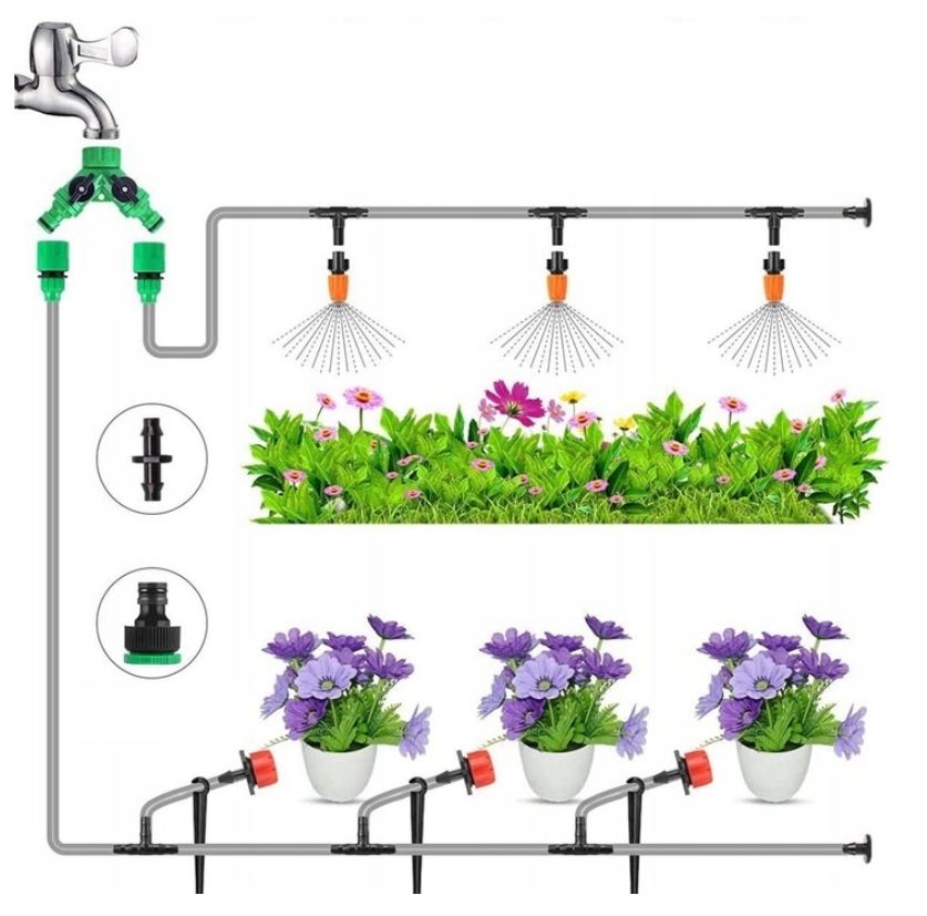 Полный регулируемый комплект для автоматического капельного орошения сада. Идеально подходит для полива растений в саду, теплице, на балконе или террасе. Система DIY позволяет легко настроить систему под индивидуальные нужды, а цельные трубы обеспечивают долговечность и надежность.
