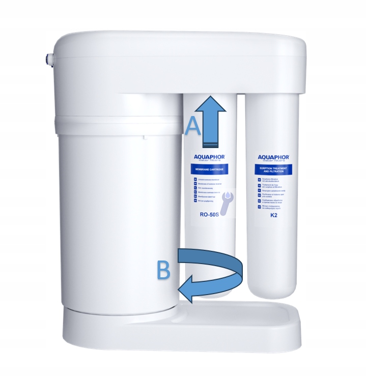 - очень простая и быстрая замена картриджей по сравнению с большинством перевернутых моек системы осмоса. Замена картриджей занимает мало времени, не требует инструментов и не создает возможности контакта с содержимым картриджей.