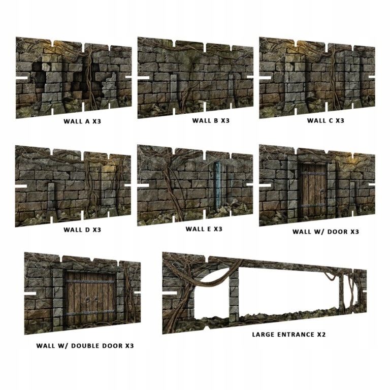 хранилища набора Enveron содержит полный интерьер в одном уровне подземелья или замка, подходящие для многих миниатюрных фэнтезийных игр и RPG. Он содержит широкий выбор систем стен, интерактивную мебель для подземелий и выбор ловушек и элементов целей.