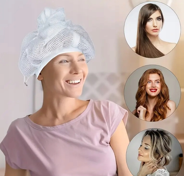 - Революционная защита – эти сетчатые шапки из высококачественных материалов нежны и мягки к коже, доставляют приятные ощущения, подчеркивая при этом естественные локоны. Кроме того, он защищает кожу головы во время химической завивки и уменьшает пушистость, что дает уникальный эффект.
