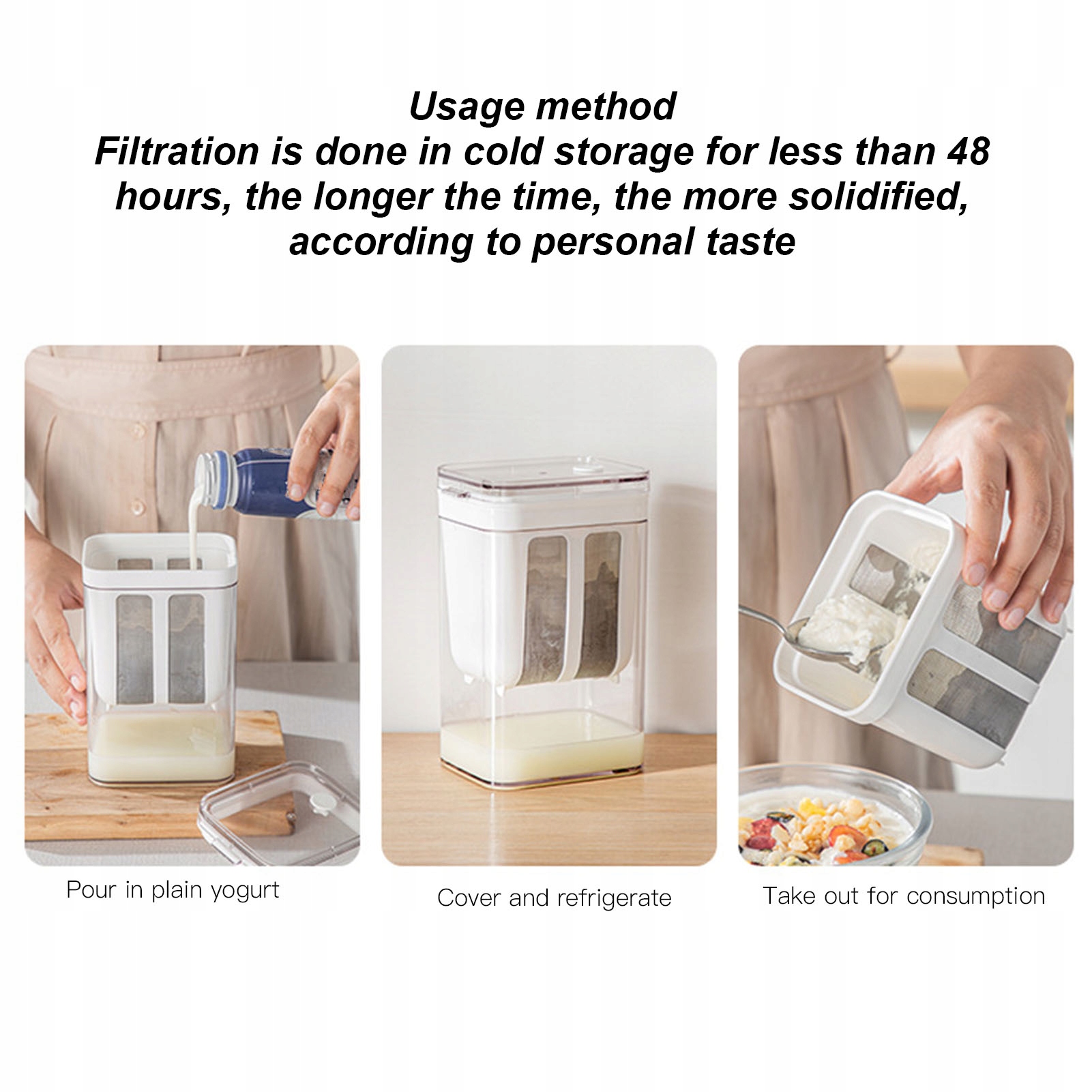 5. Универсальное использование: этот влагоотделитель можно использовать не только для фильтрации йогурта, но и для фильтрации других жидкостей, таких как сыр, пахта и т. д.