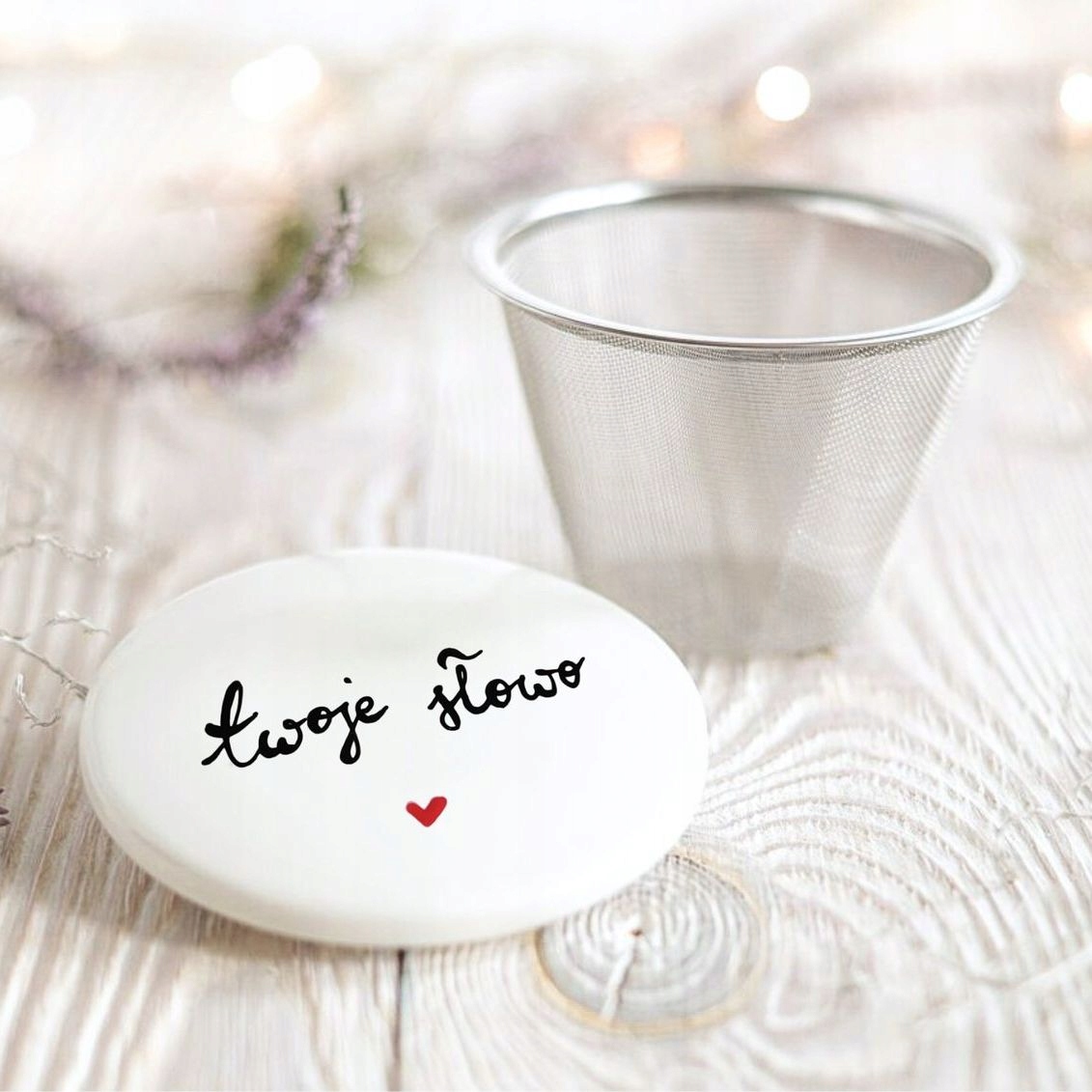 Ситечко и крышка чашки, персонализированная одним словом
