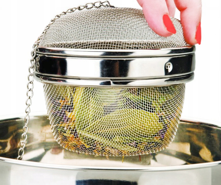 Удобный способ отделения листьев овощей или специй от бульона, супового соуса и других продуктов. Его также можно использовать в качестве заварника для чая и трав.
