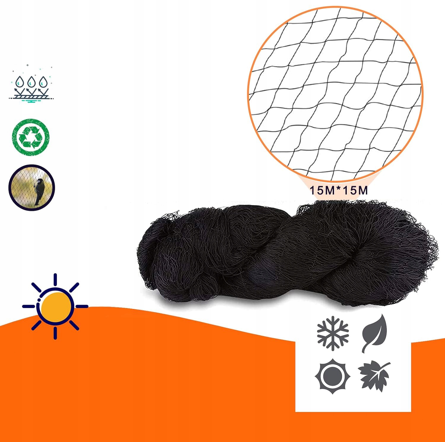Защитная сетка для птиц может использоваться в течение года и может выдерживать как солнце, дождь, так и снег, она сильна и долговечна. растения