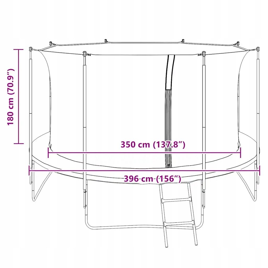 Входное отверстие имеет высококачественную молнию, прикрепленную рядом с одним из 8 столбов, что облегчает открытие и закрытие сети. Вход вместе с пряжкой гарантирует безопасность ваших детей, прыгающих на батуте. Эта запасная безопасная сетка предназначена для батутов с высотой 3,96 м, которая может быть найдена в нашем магазине (SKU: 142094).