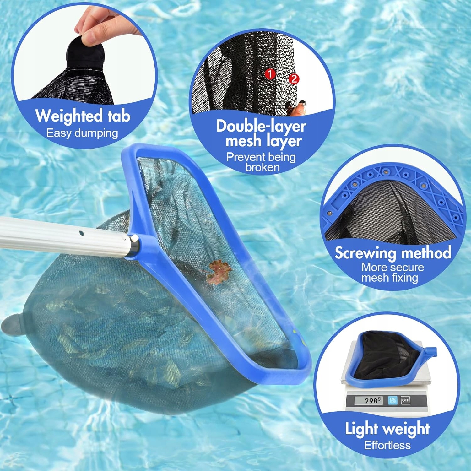Наша сетка для бассейна имеет отверстие 43,5 x 26 см и глубину 42,5 см. Широкое отверстие облегчает сбор крупных плавающих предметов и удаление большего количества мусора за раз.