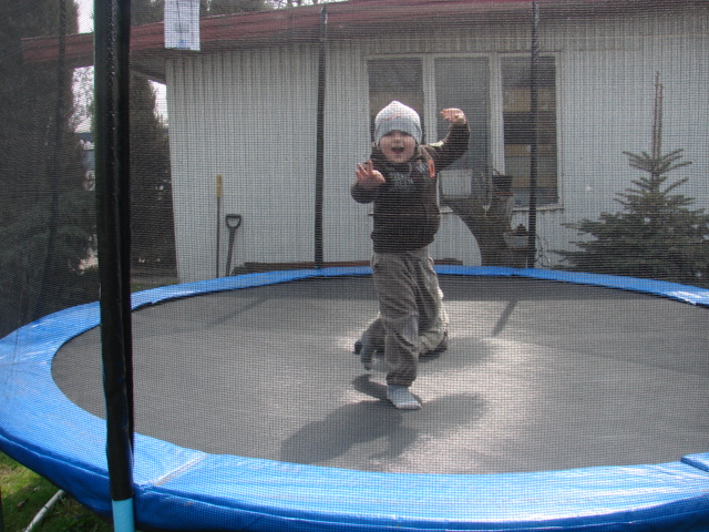 Сетка выходит за рамки каркаса и крепится снизу крючками (на резинках) к треугольникам на батутном коврике. Прочная молния дополнительно закреплена пряжкой внизу. Важно, чтобы эта сетка не была привязана к столбам, а накрыта специальными чехлами. Благодаря этому используется вся поверхность батута, а пенопласт на стойках защищен от повреждений.