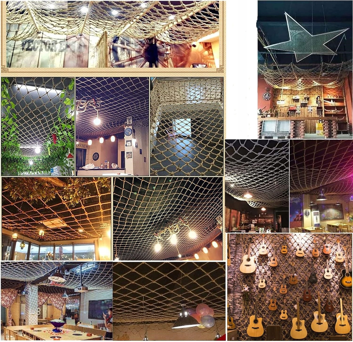 ★【Декоративная сетка внутри или снаружи】:внутреннюю можно использовать для украшения бара, ретро-кафе, потолочной сетки, фотостенной сетки, сетки для одежды, перегородки комнаты; На открытом воздухе можно использовать для детских садов, парков развлечений, общественных объектов, ландшафтных заборов, защиты подвесных мостов, парков развлечений с веревочными сетками, сеток для домов на деревьях и других целей.