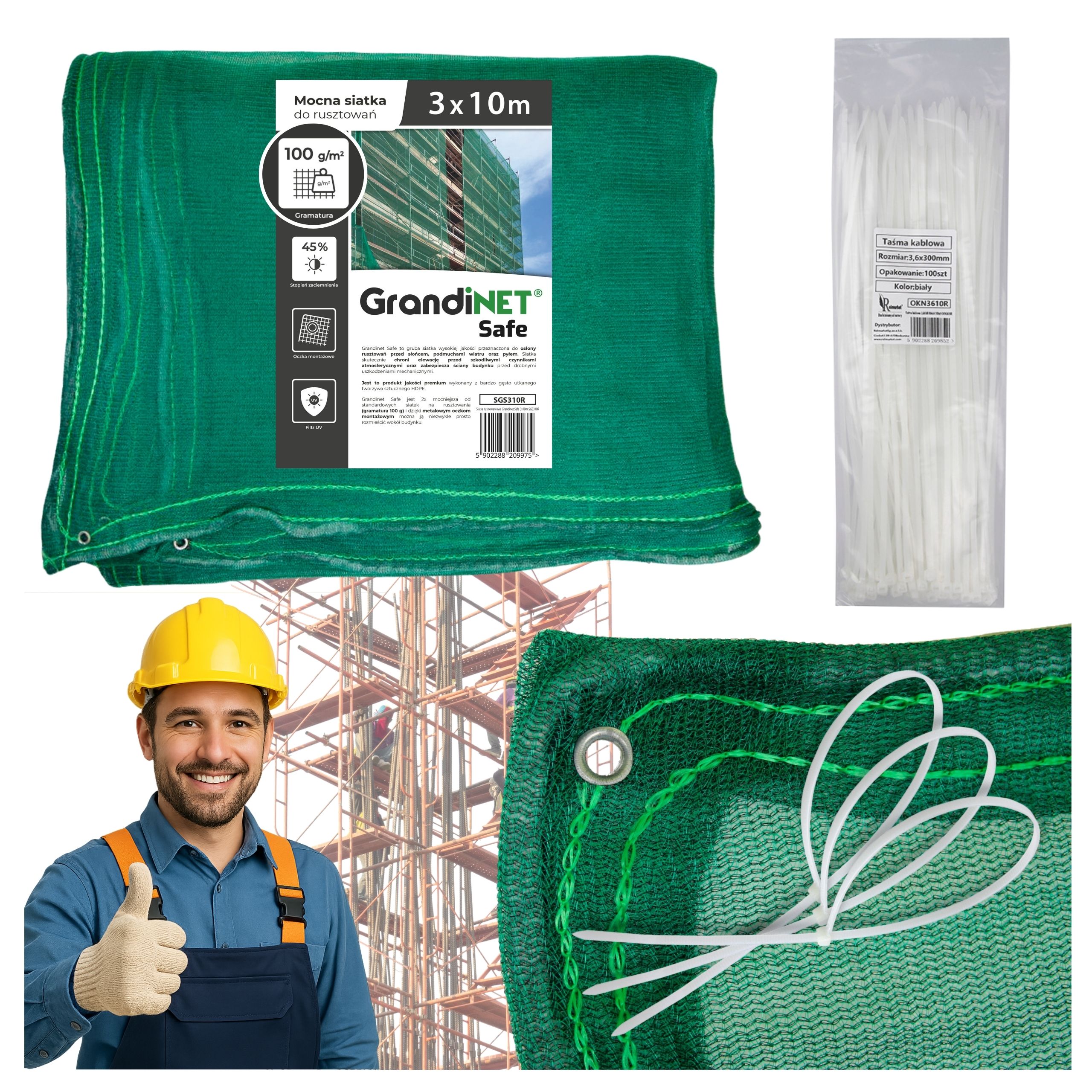 Grandinet® ®safe сетчатой, усиленная - для покрытия лесов на солнце, порывах ветра и пыли с монтажными глазами + кабельными полосами. 100 шт. h2> 100g h2> ✅ Цвет: зеленый h2>