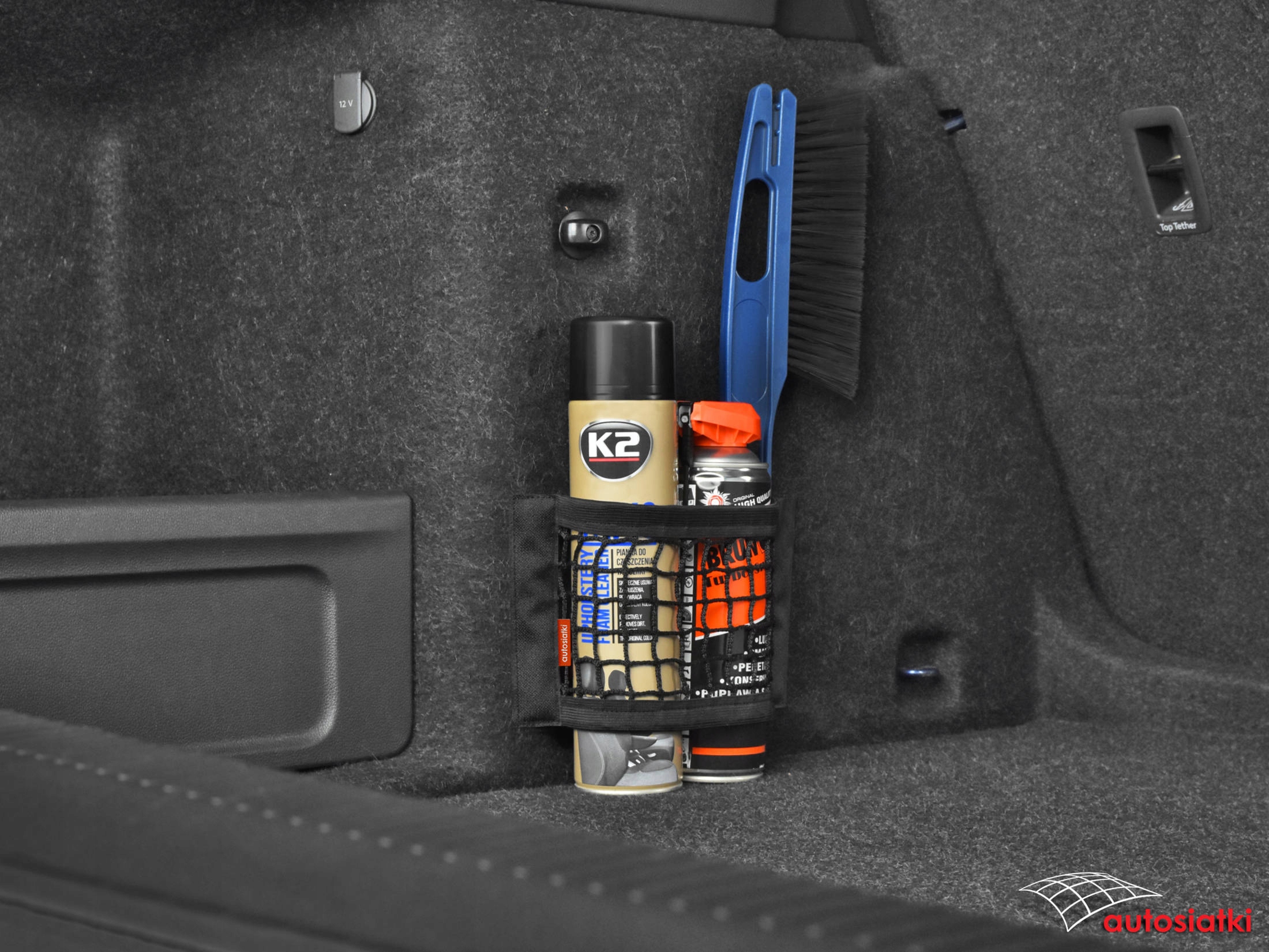 Это прочная сетка с лентой-липучкой по бокам. Отделка гибкой резиной сверху и снизу, что позволяет подогнать сетку под транспортируемые предметы. Забор крепится к ковру в багажнике или салоне автомобиля.