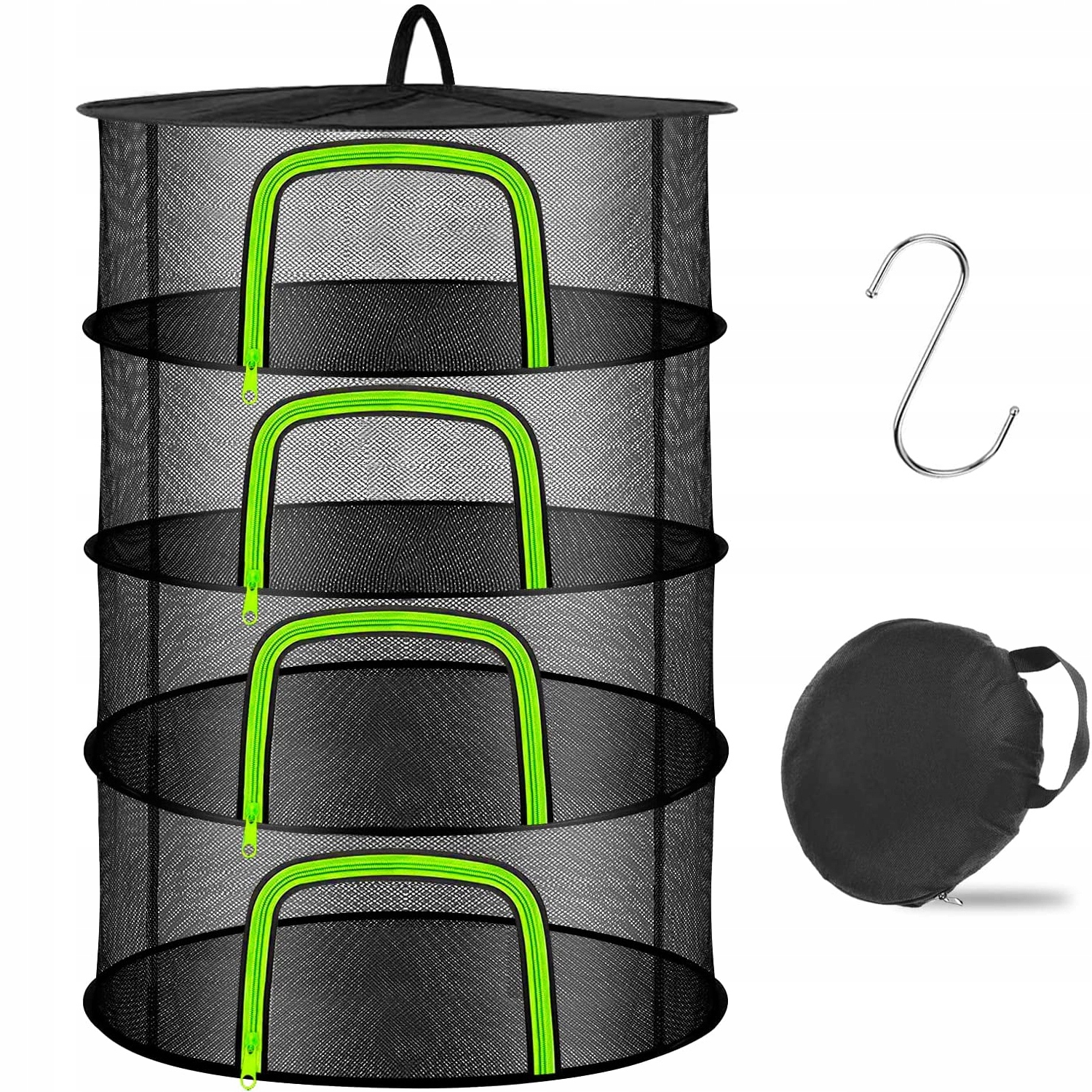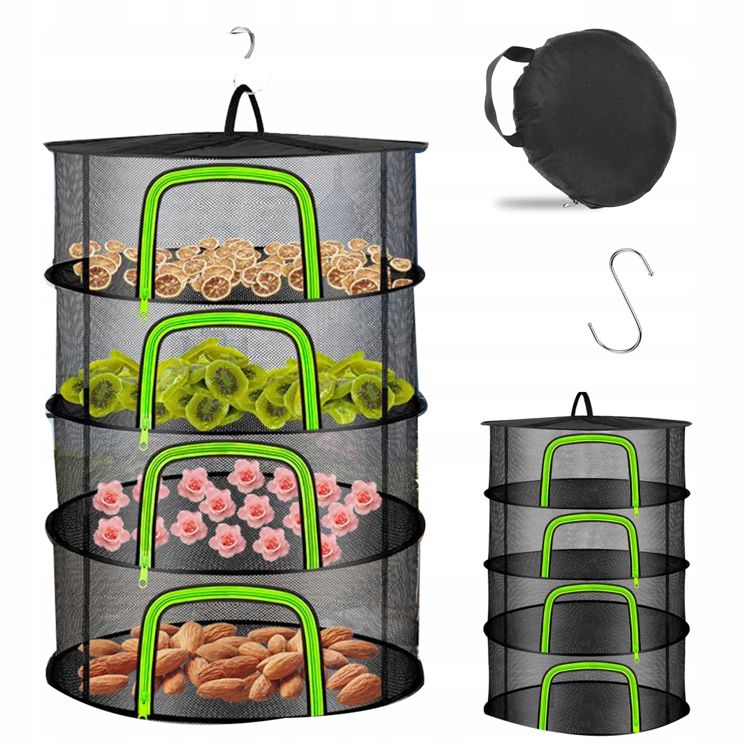 ✔️ 【4-слойная большая вместимость】: 4-слойный фильтр для подвешивания трав и сеток для сушки, диаметр в разложенном виде 60 см, высота каждого слоя 20 см, общая высота 80 см. На каждом уровне достаточно места для сушки множества растений и трав. Каждый слой имеет отдельную молнию, которую можно рассортировать и высушить, чтобы не перепутать. Вертикальная конструкция позволяет очень эффективно использовать пространство.