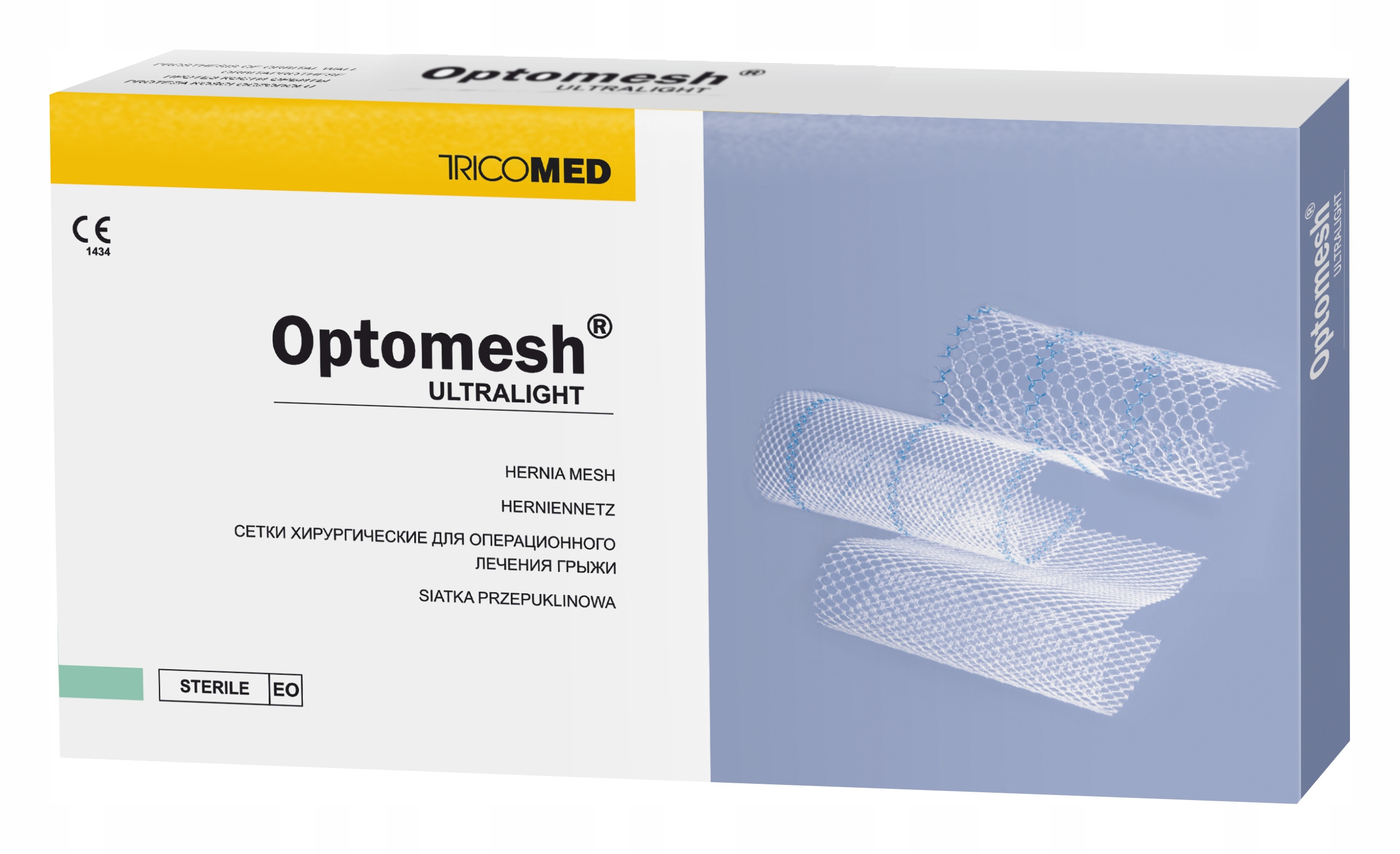 Хирургическая сетка Optomesh Ultralight — современный имплантат, используемый при хирургическом лечении первичных и рецидивных грыж, послеоперационных рубцов, бедренных, паховых и околопупочных грыж.
