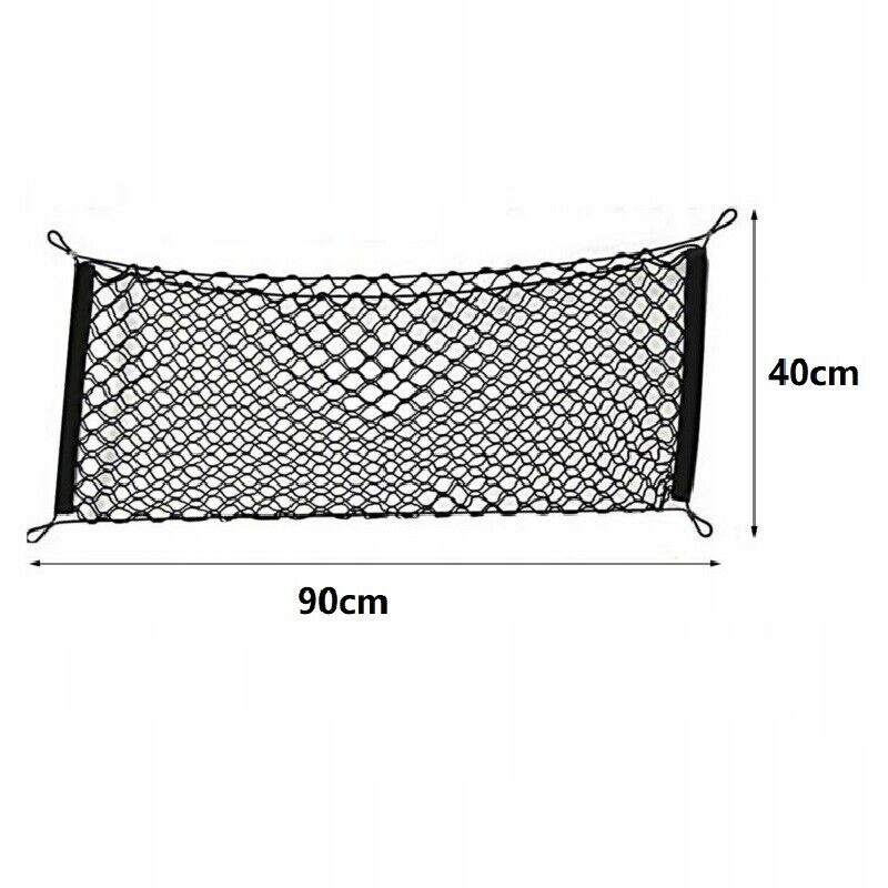 Сетка имеет 4 точки крепления с карабинами. Резинка, расположенная по периметру сетки, позволит подогнать ее под размер багажника.