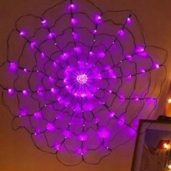 СІТКА-ПАВУТИНА 70 СВІТЛОДІОДНІ ЛАМПИ ДЛЯ ХЕЛОВІНУ ФІОЛЕТОВЕ ОСВІТЛЕННЯ