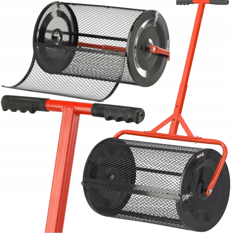 Сетчатый каток, используемый для разбрасывания почвы, песка, почвы, смешанной с семенами или удобрениями. Его также можно использовать для выравнивания после посева травы. Ролик изготовлен из стали. Заполнение происходит через дверцу, расположенную на барабане. Телескопическая ручка усилена в месте соединения двумя стальными трубками. Обработанная поверхность термообработанная, с порошковым покрытием. Ручка покрыта ПВХ.