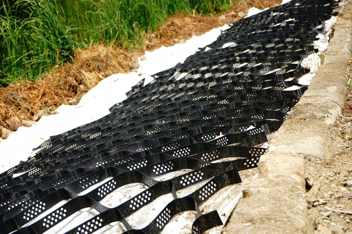Стоит добавить, что, поддерживая соответствующую влажность в ячейках сетки, можно развивать различные виды растительности, что придает эстетичный окончательный вид завершенным земляным работам. .