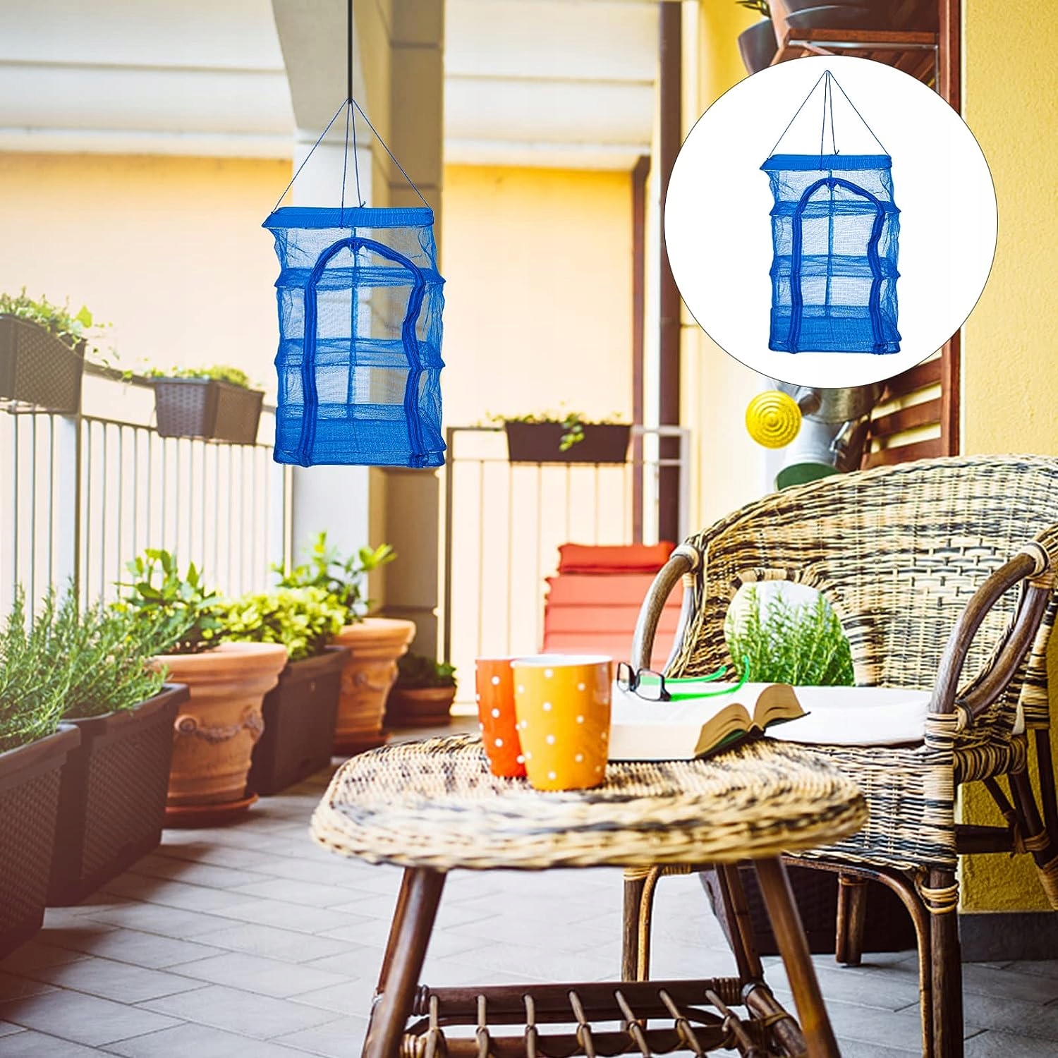 🌽 【Уникальный гуманизированный дизайн】: Подвесная сетчатая сетка для сушки растений не требует сборки. Это многофункциональная трехуровневая сетка для подвешивания одежды. Дно представляет собой ветрозащитную зону, эффективно сушищую продукты на солнце.