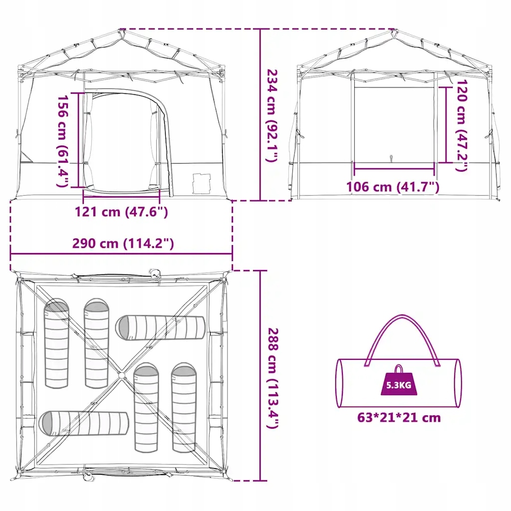 - Примечательные дополнения: Палатка оснащена прочной молнией для легкого доступа и душевного спокойствия. Бесшовная конструкция позволяет быстро входить и выходить без каких-либо проблем. В комплект также входит сумка для переноски, упрощающая упаковку и транспортировку.