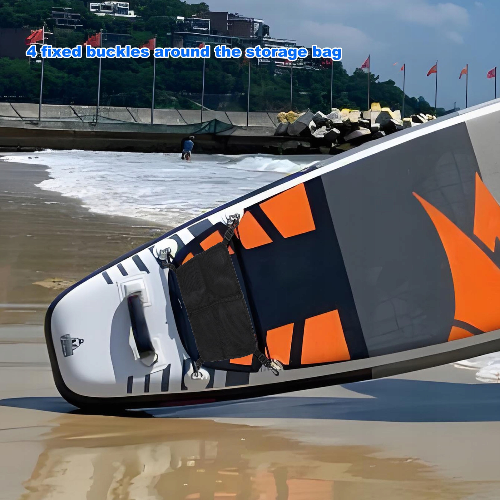 2. Безопасное монтаж: сумка для хранения имеет 4 фиксированных крючка со всех сторон, обеспечивая дополнительную безопасность и стабильность для вещей во время гребля, предотвращая случайные утечки или потери во время транспорта.