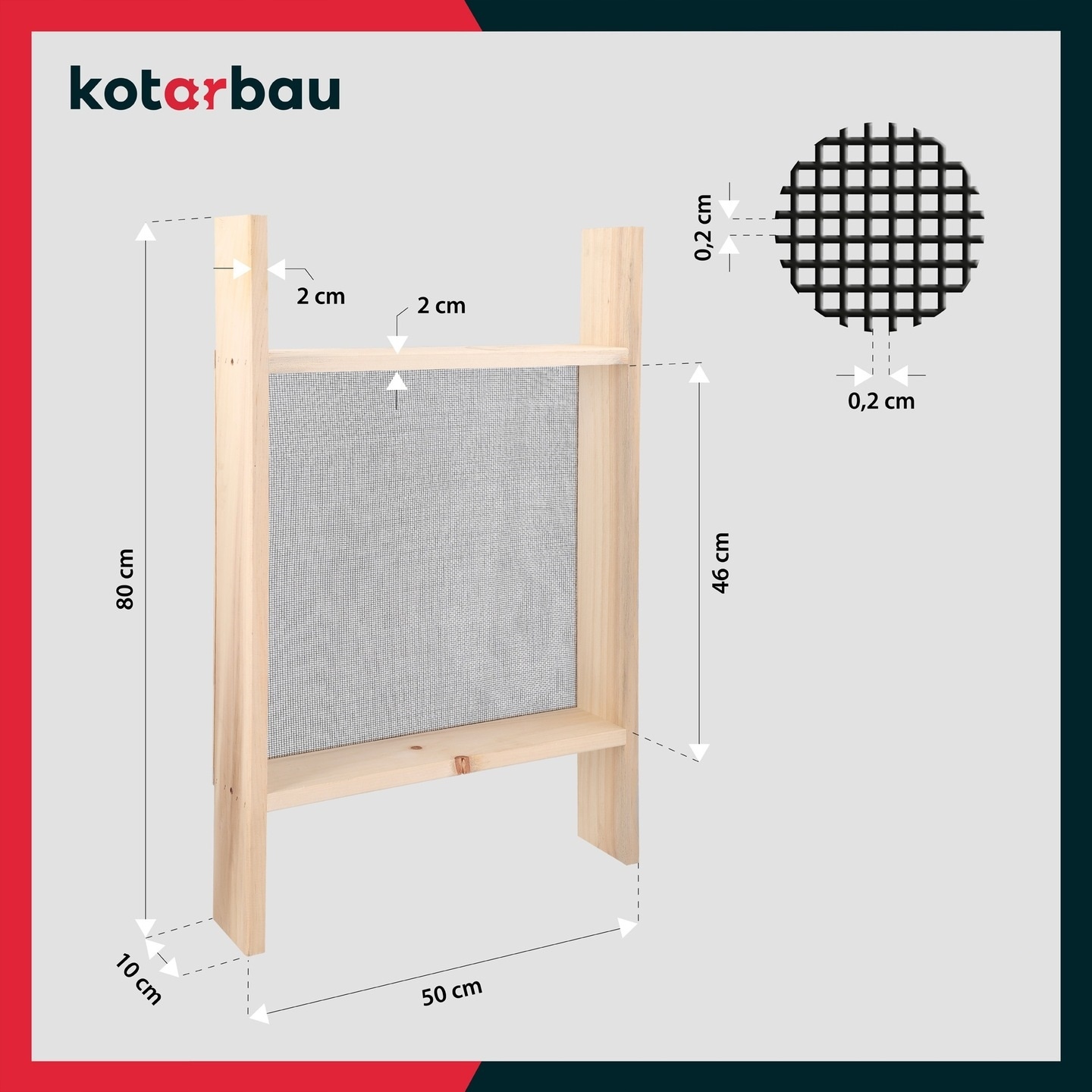 - Деревянный каркас, использованный для изготовления сита, отличает устойчивость и долговечность конструкции.