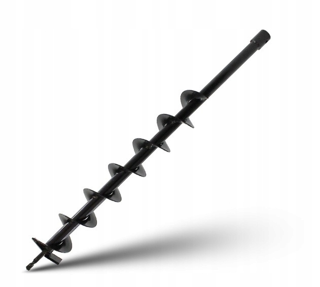 Шнековое сверло диаметром 80 мм и длиной диаметром 800 мм для использования в буровых установках, применяемых в садовых, строительных и других работах, выполняемых в грунте, требующих сверления отверстий.