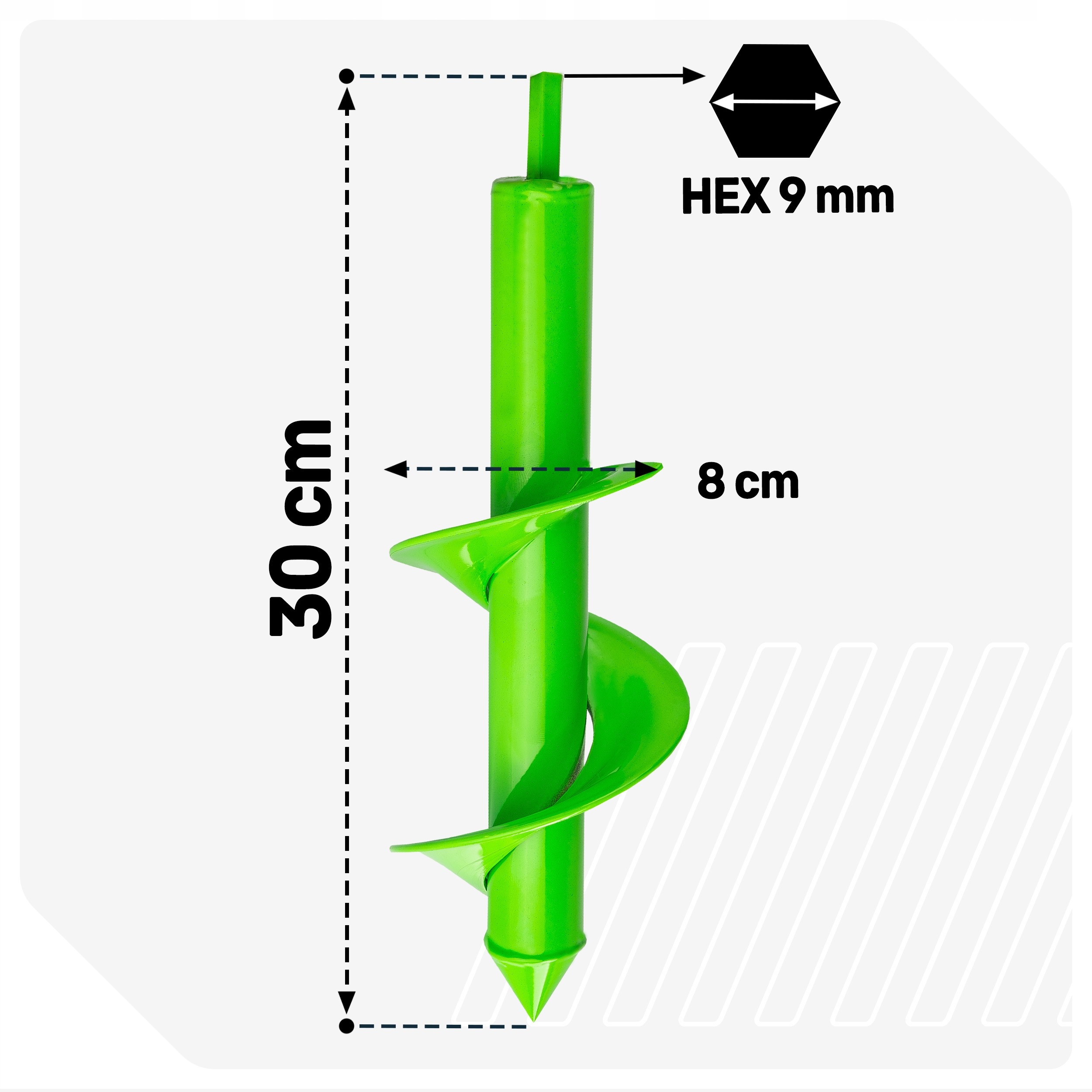 - ✔️ Спиральная структура эффективно удаляет почву, делая бурение более плавным и без засорения.